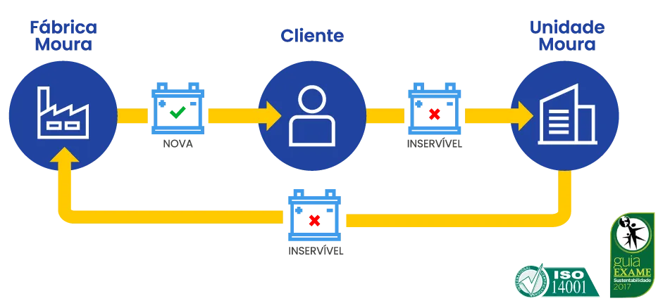 O programa visa garantir a sustentabilidade através da gestão ambiental em todos os processos e esferas da Moura. A cada uma bateria nova vendida, uma antiga deve ser recolhida.